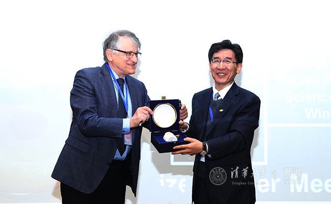 冯·克利青教授赠送礼物祝贺薛其坤获得未来科学大奖。