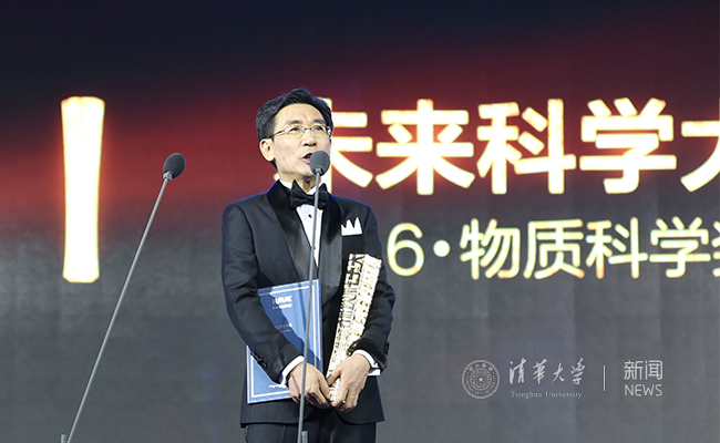 当晚,国际著名钢琴家李云迪、著名小提琴家吕思清的演奏拉开了典礼的大幕。各界代表身着盛装走过红毯,步入典礼现场。典礼上,物质科学奖捐赠人邓锋、吴亚军、吴鹰、徐小平和1985年诺贝尔物理学奖获得者克劳斯·冯·克利青(Klaus von Klitzing)教授、1987年诺贝尔物理学奖获得者约翰内斯·格奥尔格·贝德诺尔茨(J. Georg Bednorz)教授共同为薛其坤颁发了证书和奖杯。