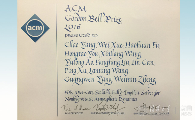 清华新闻网11月18日电 11月17日,在美国盐湖城召开的全球超级计算大会(SC2016)上,中科院软件所杨超和清华大学计算机系薛巍、地球系统科学研究中心付昊桓等共同领导的团队所完成的“千万核可扩展大气动力学全隐式模拟”获得“戈登·贝尔”奖,实现了该奖创办30年来我国在此大奖上零的突破,成为我国高性能计算应用发展的新里程碑。