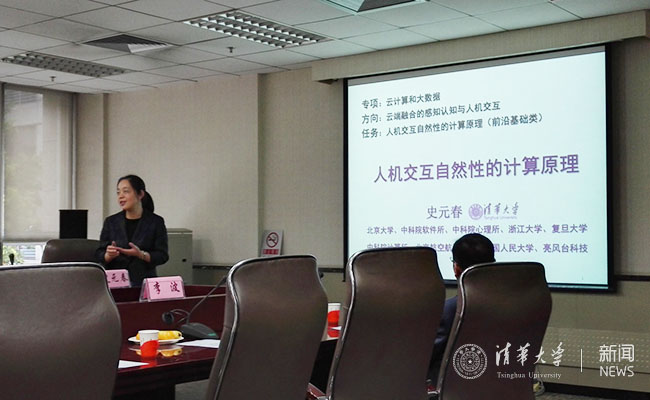 会上,项目负责人、清华大学计算机系教授史元春就项目的主要研究内容、实施方案和预期成果等方面进行了汇报,分析了从原理上对人机交互自然性进行定义、建模和计算研究的可行性、先进性和重要性及具体技术路线,同时还就团队管理措施和项目申报以来已开展的工作和进展情况做了详细说明。