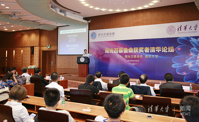 周光召1951年毕业于清华大学物理系,是我国著名的科学家、“两弹一星功勋奖章”获得者,曾任全国人大副委员长、中国科协主席、中国科学院院长等职。周光召1984年曾担任清华大学物理系主任,1985年任清华理学院院长。在周光召先生和钟瀚德先生的倡导和支持下,周光召基金会从2011年起每年在清华大学举行一次年度获奖者论坛。今年举行的是第六次论坛。