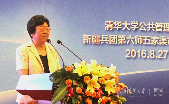 韩景阳代表清华大学对论坛的隆重举行表示热烈祝贺,对新疆兵团、兵团第六师五家渠市委市政府、专家学者及清华校友表示衷心感谢。她表示,8月17日习近平主席在推进“一带一路”建设工作座谈会上指出,要切实推进舆论宣传,积极宣传“一带一路”建设的实实在在的成果,加强“一带一路”建设学术研究、理论支撑、话语体系建设。韩景阳指出,这正是本次公共管理高层论坛的初心所在。