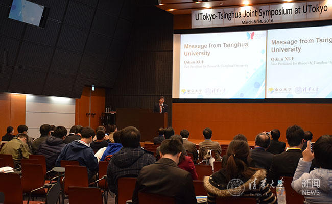 清华新闻网3月10日电(通讯员 许静)3月9日,“2016清华大学—东京大学联合研讨会”在日本东京大学举办。清华大学副校长薛其坤,东京大学常务副校长古谷研(Ken Furuya)教授共同出席开幕式并致辞。