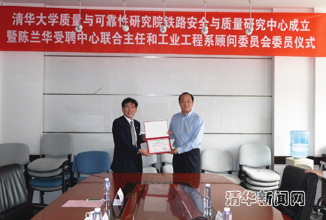 清华新闻网9月11日电(通讯员 南婕)9月8日下午,清华大学质量与可靠性研究院铁路安全与质量研究中心举行成立仪式,陈兰华受聘中心联合主任和工业工程系顾问委员会委员仪式同期举行。国家铁路总局常务副局长陈兰华,清华大学副校长、清华大学质量与可靠性研究院院长薛其坤出席仪式。
