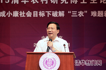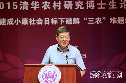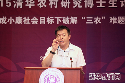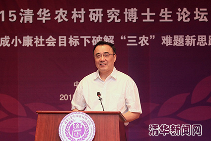 清华新闻网7月7日电 7月4日上午,“2015清华农村研究博士生论坛”在清华大学举办。论坛由清华大学中国农村研究院(以下简称农研院)主办,主题是“全面建成小康社会目标下破解‘三农’难题新思路”。中央农村工作领导小组副组长、办公室主任、农研院院长陈锡文,全国政协民族和宗教委员会副主任、国务院参事、农研院指导委员会委员杜鹰,中央财经领导小组办公室副主任、中央农村工作领导小组办公室副主任、农研院副院长韩俊,清华大学副校长谢维和等出席论坛。