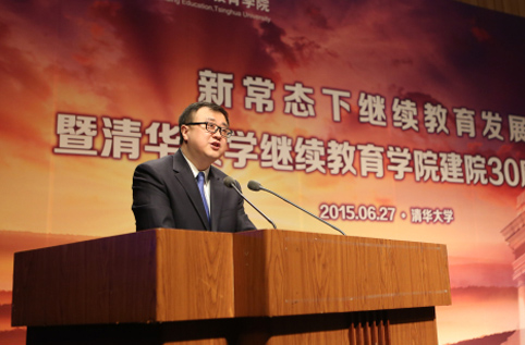 杨斌代表学校致辞,对学院在继续教育领域所取得的成绩给予了高度评价。他指出,清华大学继续教育30年是服务国家战略、不断满足社会需求的30年,是与时俱进、开拓进取、创造辉煌的30年,学院在国家和学校两个层面都发挥着重要的作用。