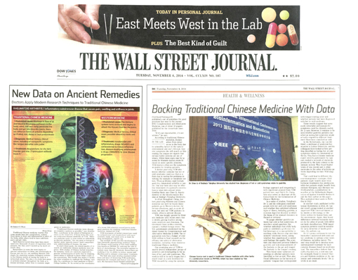 清华新闻网11月19日电 日前,美国《华尔街日报》以“古老疗法的新资料(New data on ancient remedies)”为题,用两个版面刊发了一则关于中医药科学研究的长篇报道,并在报纸头条位置对该报道作了题为“实验室中的东西方交融(East Meets West in the Lab)”的推荐。该报道重点介绍了自动化系、信息国家实验室生物信息研究部李梢教授课题组的研究成果。