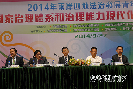 清华新闻网9月30日电 9月27日,由中国法学会、香港基本法澳门基本法研究会、澳门基本法推广协会共同主办的2014年两岸四地法治发展青年论坛在澳门举行。