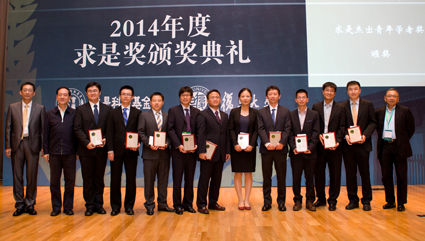 清华新闻网9月18日电 9月13日,“求是”科学奖颁奖典礼在复旦大学举行。清华大学物理系教授薛其坤获得2014年度“求是杰出科学家奖”。清华大学生命科学学院研究员颉伟,清华大学校友、复旦大学教授赵俊,清华大学校友、上海交通大学特别研究员张川获得2014年度“求是杰出青年学者奖”。