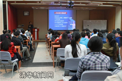 清华新闻网3月31日电 3月26日下午,中国科学院院士、四川大学副校长魏于全做客水木清华生命科学讲座,在清华大学生物新馆报告厅,为广大师生作了题为“肿瘤生物治疗研究进展”的精彩报告。来自生命学院、医学院、化学系及其他相关院系的120多名师生现场聆听了报告。