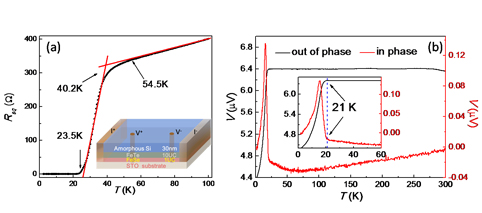 图为钛酸锶衬底上单层FeSe薄膜的电输运(a)和磁性(b)测量结果。