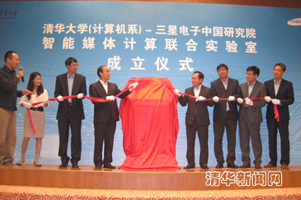 清华新闻网9月16日电(通讯员 陶品)9月13日下午,“清华大学(计算机系) - 北京三星通信技术研究有限公司智能媒体计算联合实验室”成立仪式在清华大学主楼接待厅举行,清华大学副校长袁驷和三星电子数字媒体通信研究院院长金昌容出席了成立仪式,双方共同为联合实验室揭牌。