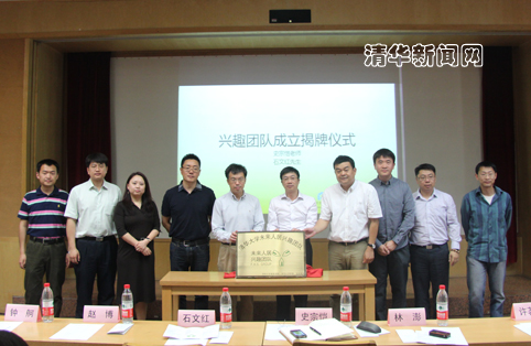 图为史宗恺和石文红共同为清华大学“未来人居”兴趣团队揭牌。