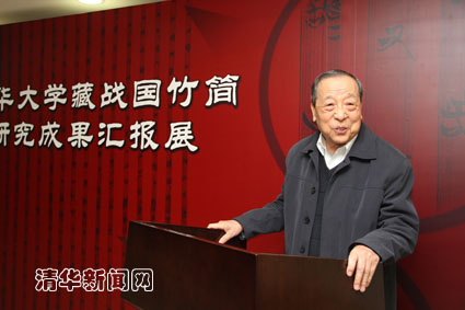 清华新闻网4月28日电(记者 邵 默)4月28日,清华大学藏战国竹简研究成果汇报展在清华大学校史馆展出。清华大学党委书记胡和平,副校长谢维和,著名历史学家、清华大学出土文献研究与保护中心主任李学勤等出席开展仪式。