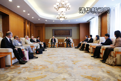 清华新闻网4月22日电 4月18日,第一届“清华-剑桥”工程学术论坛在清华大学主楼召开,英国剑桥大学前任常务副校长伊恩·怀特(Ian·White)教授、剑桥大学的三位皇家工程院院士William Milne教授、Gehan Amaratunga教授、Michael Kelly教授以及剑桥大学高级光电子中心主席Daping Chu教授做客论坛。论坛举行前,副校长谢维和会见了伊恩·怀特一行。