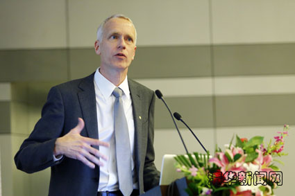 图为布赖恩·科比尔卡为清华师生作学术报告。研通社记者 王皓冉