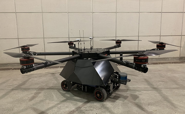 该车辆基于空间融合感知系统,通过空间感知场、空间复合规划、陆空平滑切换等技术,实现了陆空结合、自主规划、自由切换的新型驾驶模式。车辆以传统的四轮两驱底盘作为地面行驶的基础结构,在此基础上利用旋翼实现高自由度的飞行动作,具有两大特点。一是实现旋翼与车轮底盘结合,相比于地面无人车具备更高维度的运动能力和更好的灵活性;相比于传统无人机实现了有效续航里程的增加。二是具备无人驾驶自主决策能力,无人飞行汽车配备的环境感知系统与无人车相同,具有自主决策能力,无需人为控制;相比于点对点的路径,这款旋翼式陆空两栖无人驾驶飞行车辆可以进行立体路径规划,可实现垂直起降、空间规划、空中悬停、飞行避障、地面巡航、跟车行驶等功能。车辆行驶过程中,车辆会实时构建空间驾驶感知模型,判断障碍类型,针对无法绕行的障碍,就会启动飞行模式,飞越障碍并寻找可行驶域,进而降落至路径中的可行驶的平坦地面,实现空陆两栖高效自由切换,提高运输通行效率。