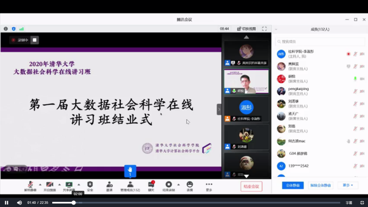 清华新闻网9月2日电 8月24日至30日,清华大学社会科学学院、清华大学计算社会科学平台于通过在线会议平台举办第一届“清华大学大数据社会科学在线讲习班”。课程主要涉及大数据与社会科学融合的新兴研究方法,来自国内高校、科研机构及其他机构中的教师、研究人员、研究生和高年级本科生约180余人参加了这次课程。