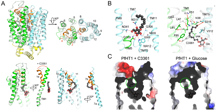 C3361别构抑制PfHT1并诱导产生新的空腔结构