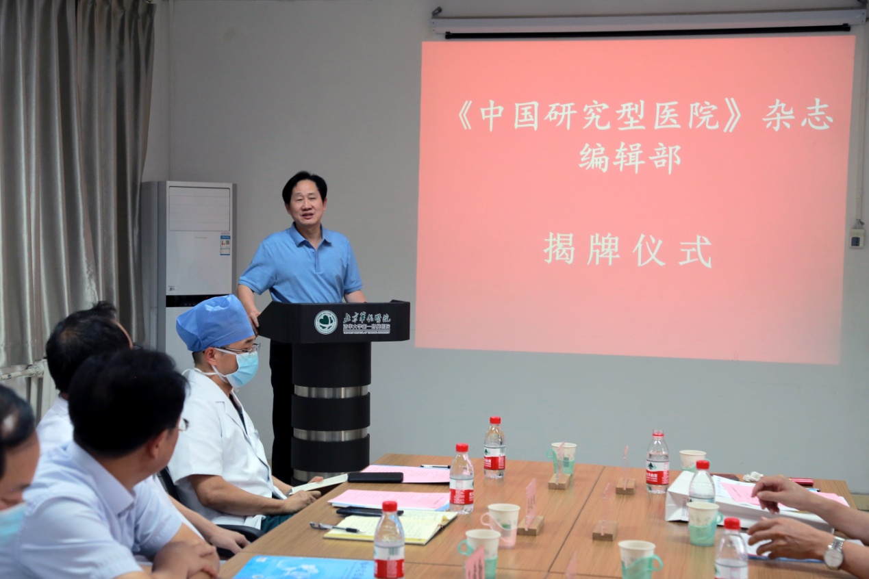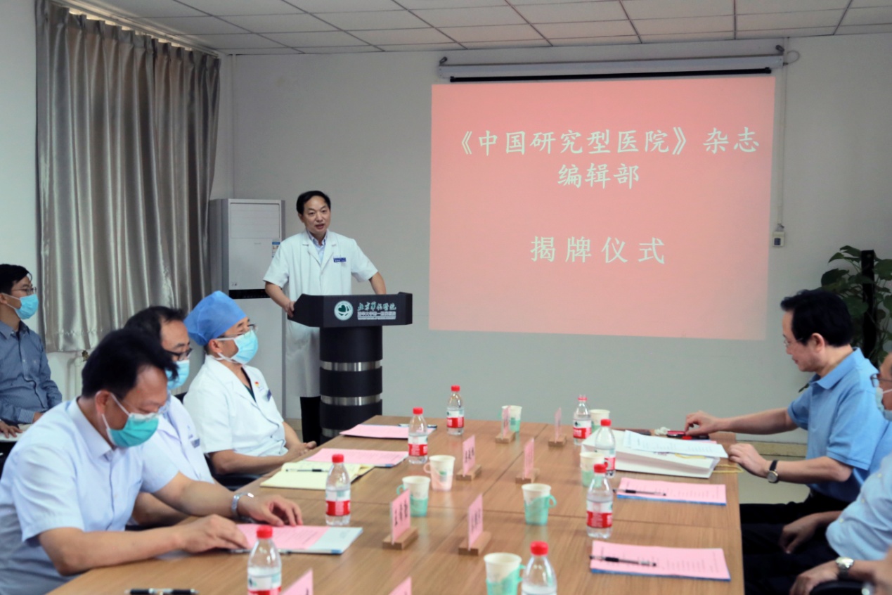 清华新闻网9月7日电 9月2日,《中国研究型医院》杂志编辑部揭牌仪式在北京华信医院(清华大学第一附属医院)举行。中国研究型医院学会名誉会长秦银河,清华大学党委常委、常务副校长王希勤,中国研究型医院学会会长、《中国研究型医院》杂志名誉总编辑何振喜,副会长兼杂志总编辑王明晓出席揭牌仪式并致辞。清华大学第一附属医院(以下简称“一附院”)院长兼《中国研究型医院》副总编辑张明奎、党委书记类延旭、副院长张东亚和刘芳、纪委书记陈淑苹及相关科室负责人参加揭牌仪式。王明晓主持会议。