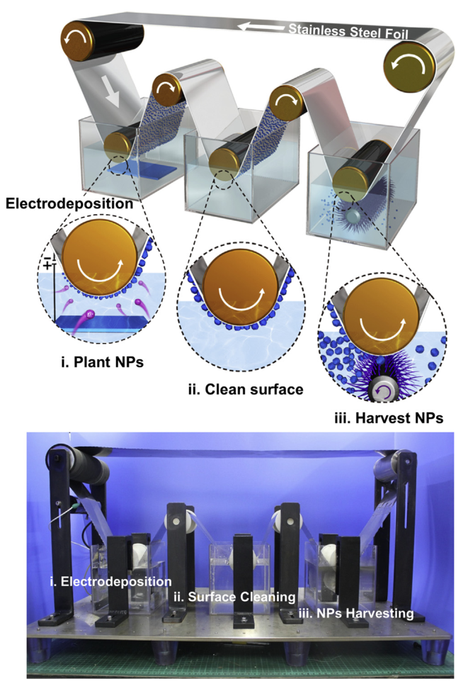 此项工作在国际期刊《物质》(Matter)上发表了题为“Metal Nanoparticles Harvesting by Continuous Rotating-Electrodeposition and Separation”(连续卷对卷电沉积与剥离制备金属纳米颗粒)的研究论文,并申请国内和国际专利。