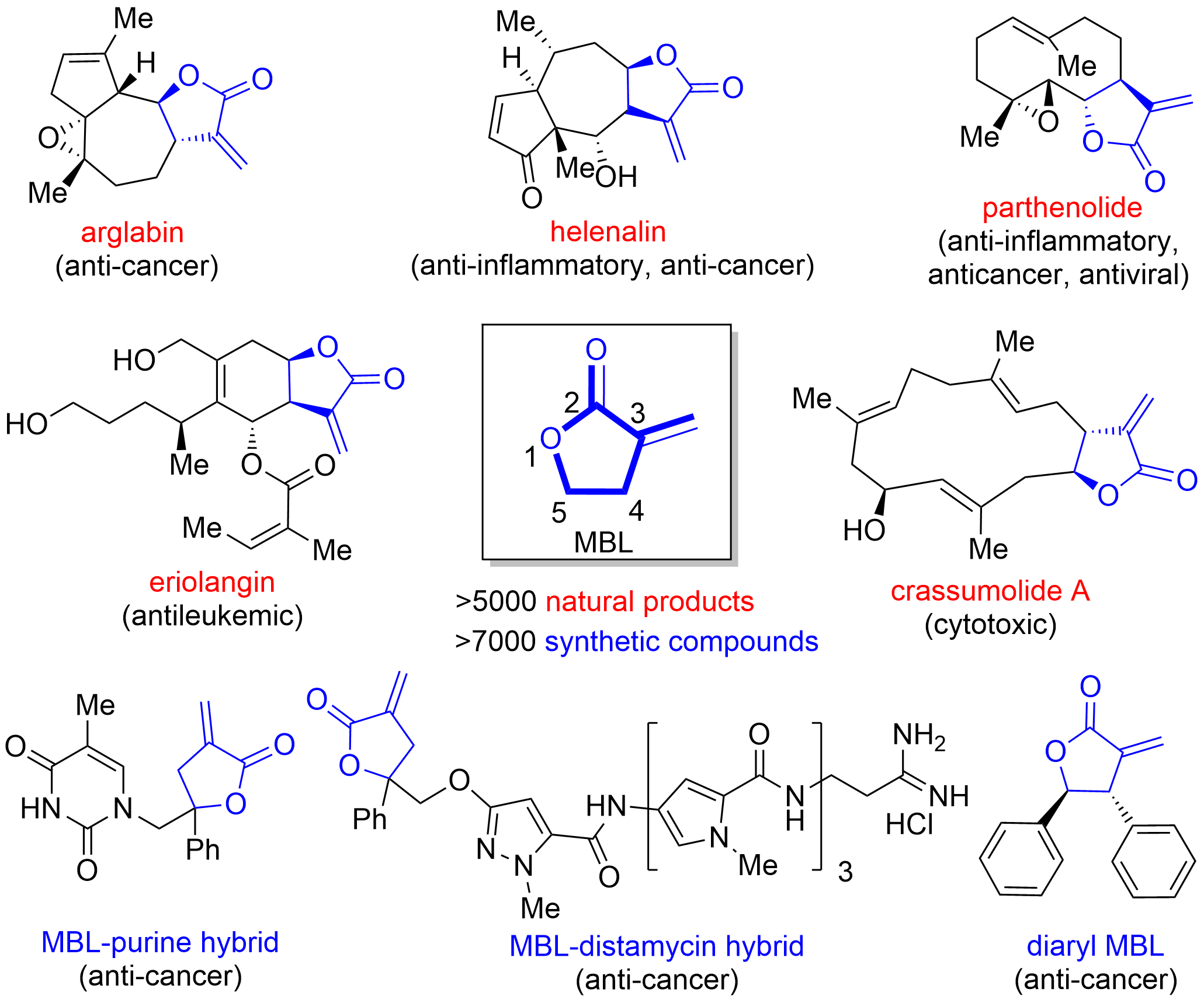 图1.含有α-亚甲基-g-丁内酯结构单元的一些重要天然产物和活性分子