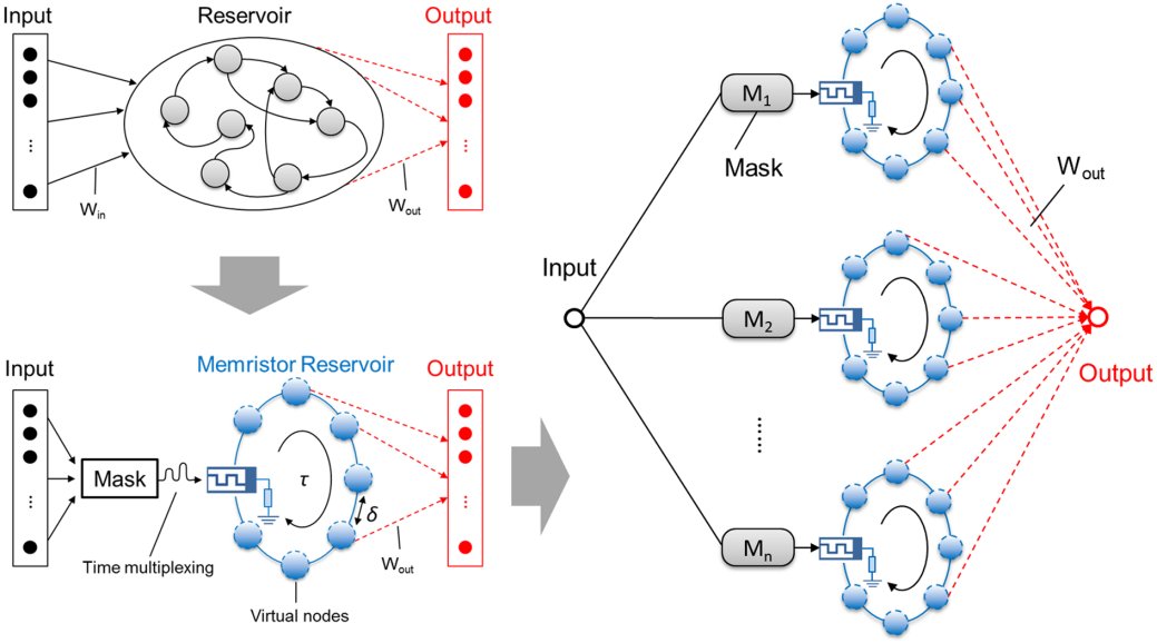 清华新闻网1月19 日电 储备池计算(Reservoir Computing, RC)是一种适用于处理时序信号的高效人工神经网络,其衍生于传统的递归神经网络(RNN),但具有更低的训练代价和更简易的硬件实现,已经在动态系统识别、时间序列预测等领域得到广泛应用。最新研究发现,复杂连接的递归神经网络可以被一个非线性的动态物理系统等效替代,这表明完整储备池计算系统有望基于少数几个元器件便可实现。