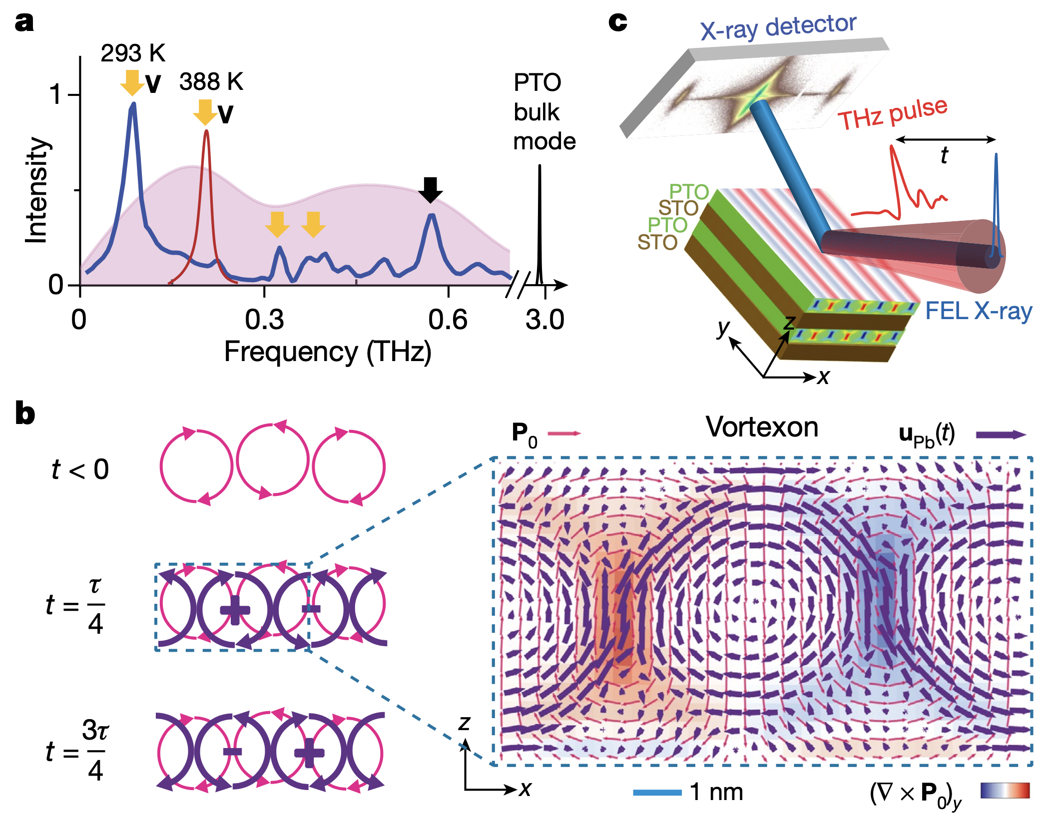 清华新闻网4月20日电 近日,由清华大学材料学院李千助理教授和美国阿贡国家实验室Haidan Wen博士等人组成的研究团队首次实验观测到铁电极化涡旋在亚太赫兹频段的多个集体晶格振荡模式,并发现一种具有大应变与电场调谐性的涡旋软模(vortexon)。该研究工作是近年来基础铁电物理学的一个重大突破,其发现的涡旋畴的动态性质在5G/6G微波介电、太赫兹光电子等新兴领域均有潜在应用前景,并在方法学层面上树立了材料超快结构动力学研究的新范式。