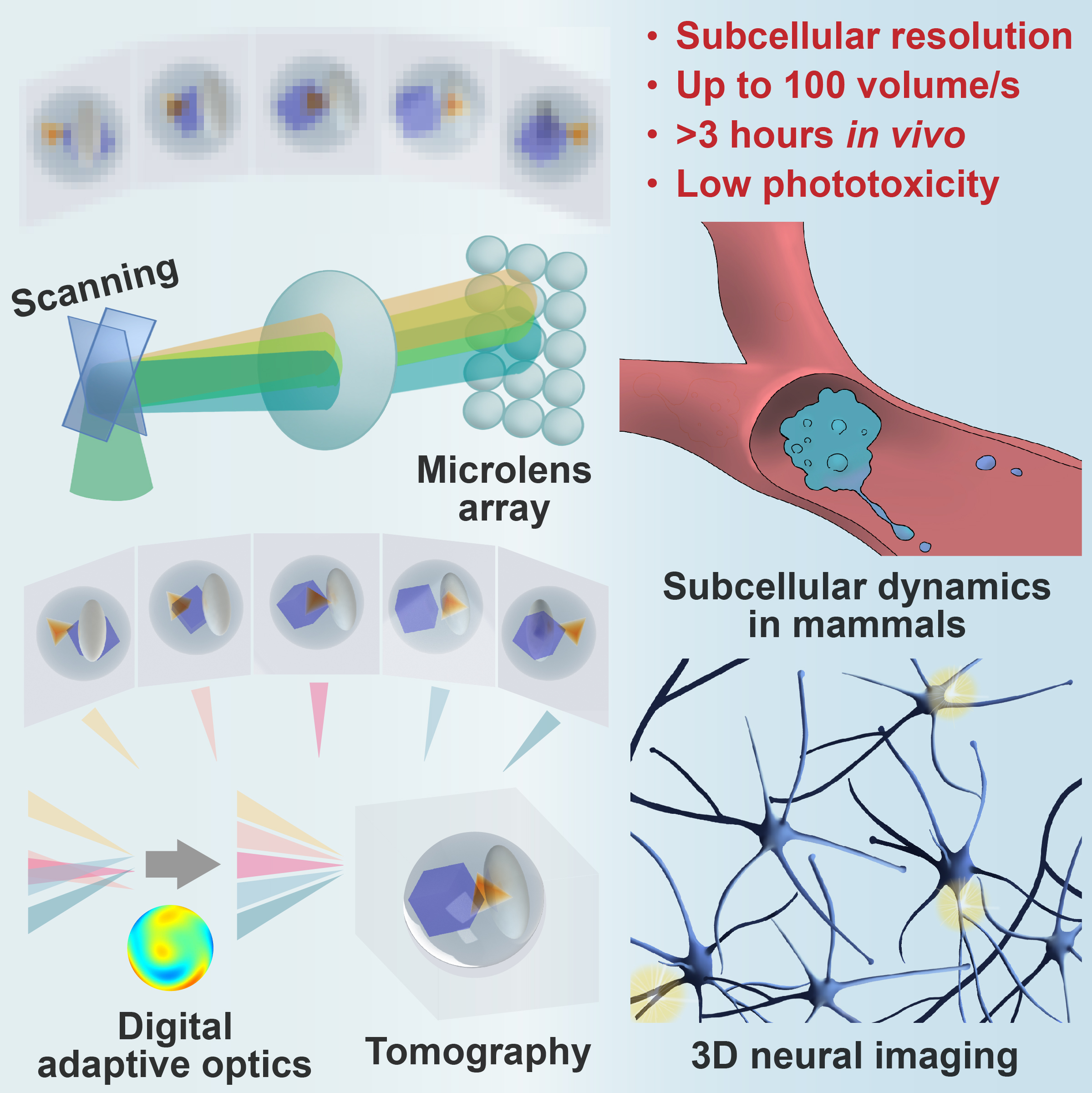 此项研究工作以“数字自适应光学迭代层析成像技术使三维亚细胞毫秒尺度活动的小时级长时活体观测成为可能”(Iterative tomography with digital adaptive optics permits hour-long intravital observation of 3D subcellular dynamics at millisecond scale)为题,于5月25日在线发表在《细胞》(Cell)期刊。