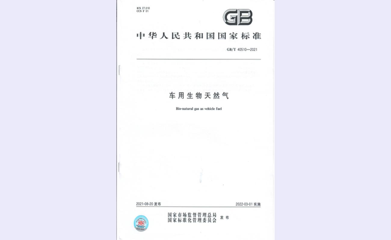 《车用生物天然气》(GB/T 40510-2021)国家标准规定了车用生物天然气的技术要求、试验方法和检验,适用于使用压力不大于25MPa(表压)、作为车用燃料的生物天然气。该标准可为生物天然气用于车用燃料提供技术依据,同时对生物天然气行业商业化、市场化进程具有较好的促进作用。