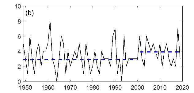 登陆台风频数序列(a)中国华南地区(b)中国华东地区
