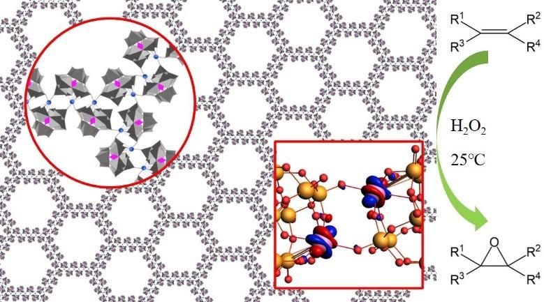 基于此,清华大学化学系王训课题组首次报道了一类基于多金属氧簇(POM)的新型类石墨烯材料——“团簇类烯”。与以往二维材料体系以原子、分子为结构基元不同,该团簇类烯以亚纳米尺度的团簇为结构基元,构筑了一类新型的亚纳米二维材料体系。团簇类烯对于烯烃催化环氧化反应,在催化活性和稳定性方面均显示出极大的提升,其转换频率(TOF)是未组装团簇基元的76.5倍。离散傅里叶变换(DFT)计算结果显示,团簇间的电子离域行为有效的降低了材料参与氧化还原反应的活化能,从而造成了催化活性的显著提升。13种不同元素取代的Keggin型团簇均可用于团簇类烯的构建。本研究揭示了团簇类烯材料独特的电子结构、出众的催化性质和良好的结构普适性,有望启发基于团簇的新材料的设计与合成。