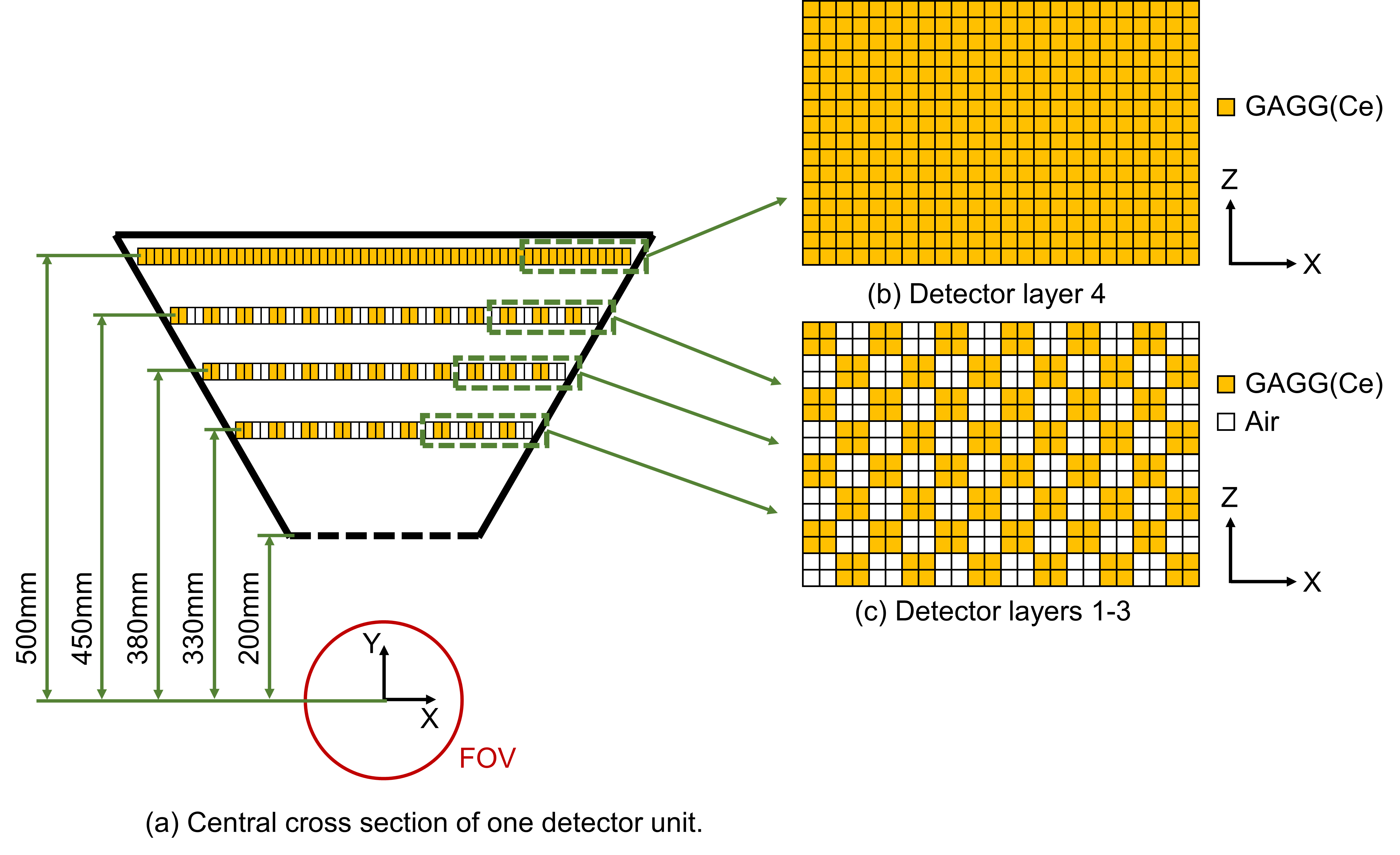 多层棋盘结构自准直探测器同时达到高分辨率和高探测效率