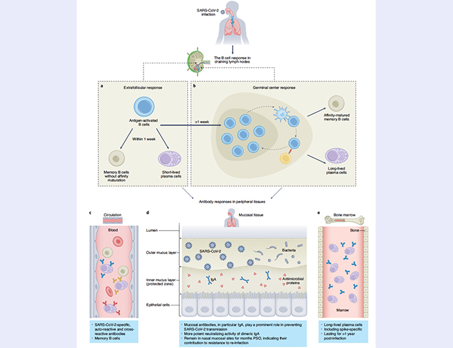 图1.针对SARS-CoV-2感染的B细胞和抗体免疫应答