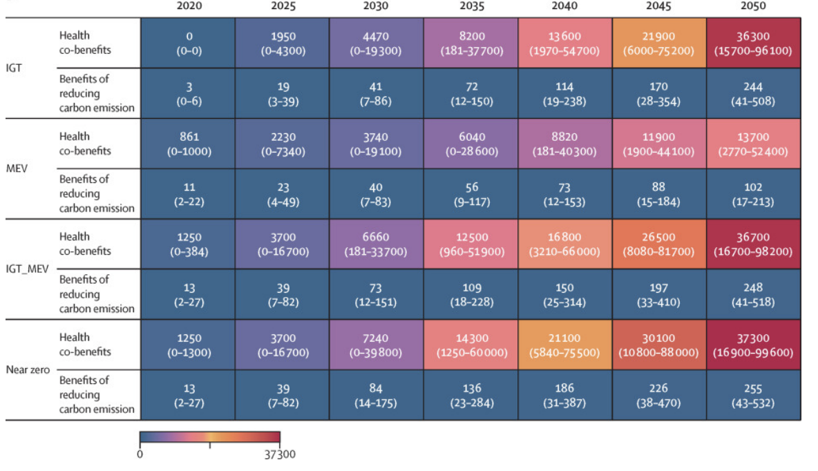研究成果以“城市交通脱碳的协同效益的情景分析(Scenarios of demographic distributional aspects of health co-benefits from decarbonizing urban transport)”为题,2022年6月14日发表于《柳叶刀-星球健康》(The Lancet Planetary Health)。