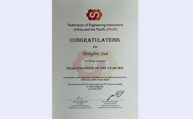 清华新闻网8月10日电 7月29日,亚太工程组织联合会(FEIAP)第三十届全体大会在菲律宾宿务召开,在会上宣布了2022年年度工程师奖(Engineer of the Year2022)评选结果。经中国科协推荐,清华大学教授、太原理工大学校副校长(主持行政工作)、世界工程组织联合会(WFEO)能源委员会副主席孙宏斌荣获亚太工程组织联合会(FEIAP)2022年年度工程师奖(Engineer of the Year2022)。这是自1987年中国科协成为FEIAP正式会员后,我国工程界第二次荣获该奖项。