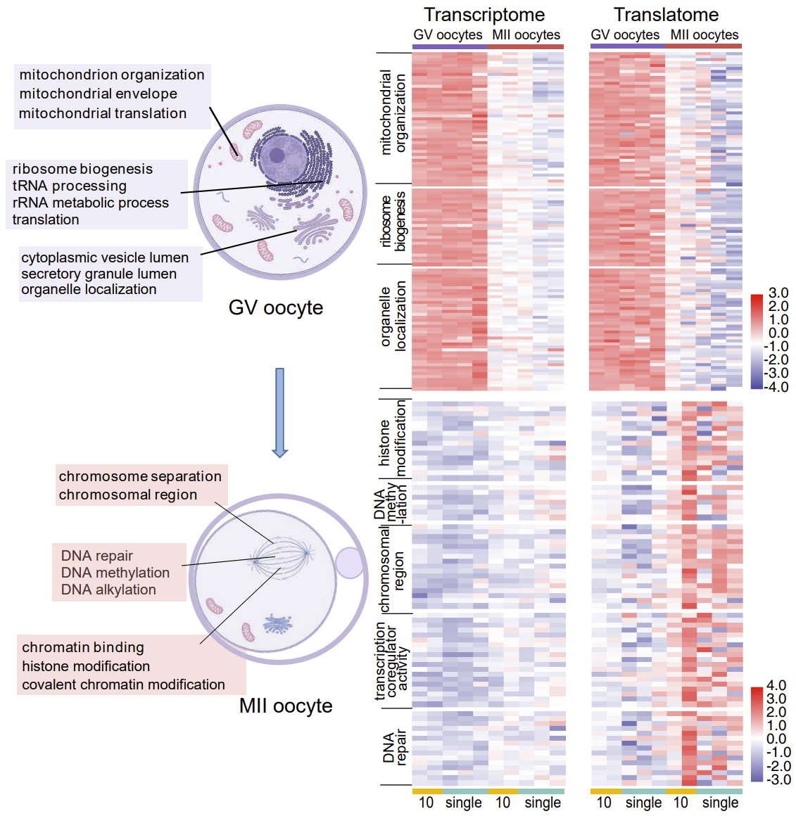 图2.卵子成熟过程中的转录-翻译双组学变化