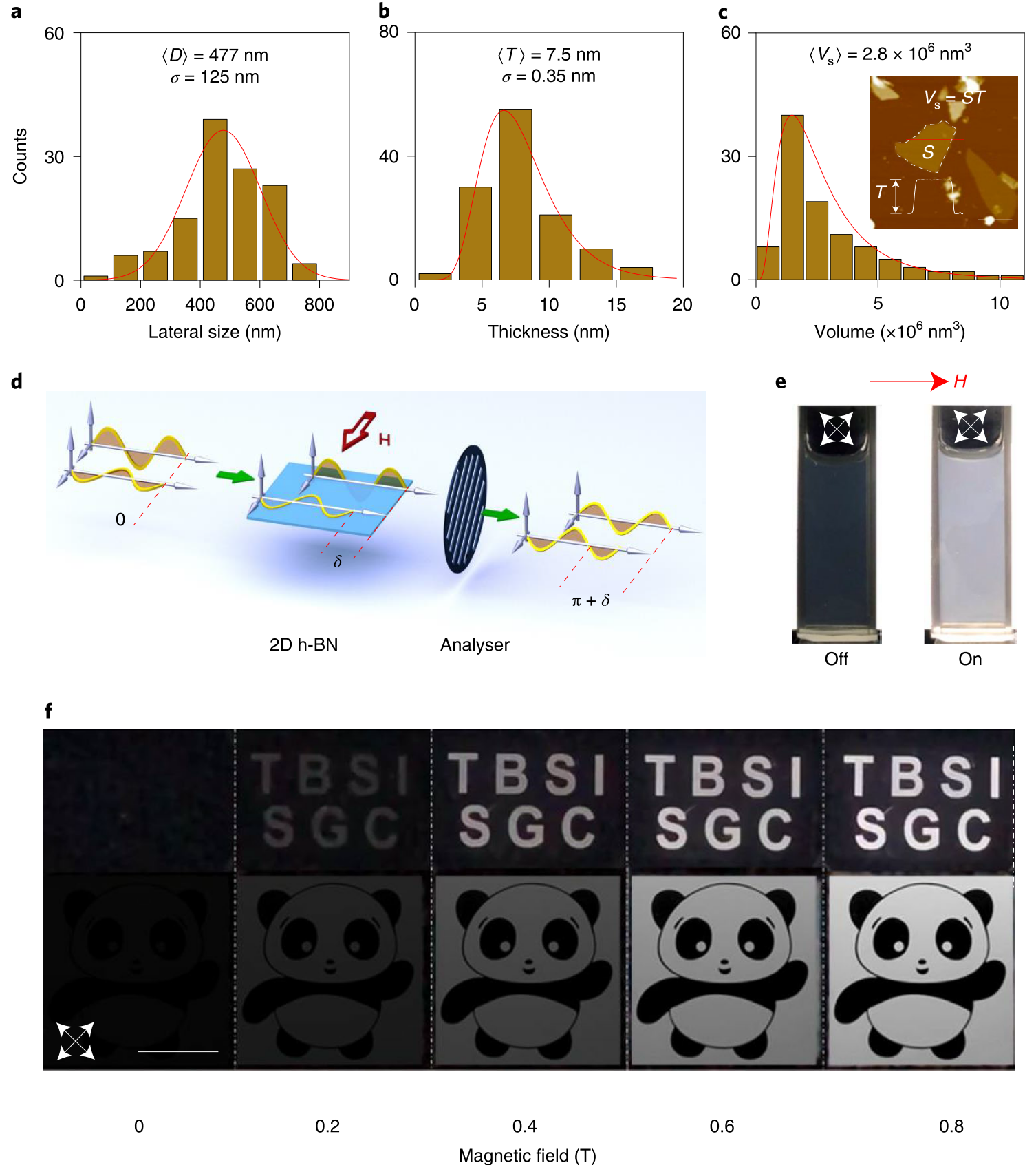 图1. 二维氮化硼无机液晶及其磁致双折射效应