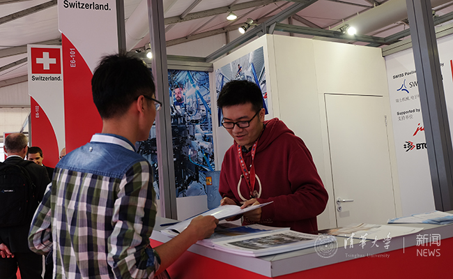 本次国际机床展中包含境外展商839家,境内展商800家,各国企业展示其最新的技术和产品,同时进行技术交流讲座。当日下午就有知名企业代表主讲的讲座,给同学们提供了难得的观摩和学习国外先进技术和设备的机会。在本次机床展中,清华大学与瑞士驻华大使馆合作,选拔志愿者协助瑞士官方展馆的日常运作,并观摩瑞士的先进技术。实践支队来到瑞士展区,遇到了清华机械系的志愿者倪圆志,他正在为来访者提供咨询服务。