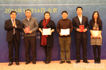 在颁奖仪式上,清华大学新闻与传播学院党委书记金兼斌还宣读了中宣部、教育部2014-2015学年度高校与新闻单位从业人员互聘特聘教授的名单,柳斌杰为特聘教授们颁发了聘书。