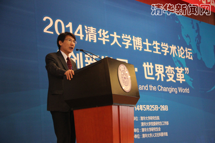 图为薛其坤副校长在2014年清华大学博士生学术论坛上发言。