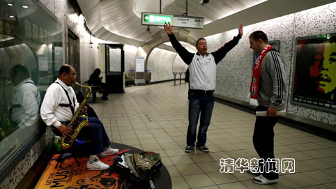 图为片中拍摄的伦敦流浪艺人在表演。