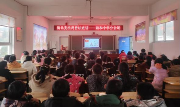 增强宪法意识,弘扬宪法精神。11月28日、12月8日,以“如何爱护中国的名片”和“与宪法同行”为主题的两场普法讲座分别在洞溪中学和阳和中学举办。来自清华大学法学院公益普法宣讲团的讲师朱倩芸和来自北京大学学生法律援助协会的志愿者刘孟沅、李嘉欣、刘博、莫瑶,通过生动活泼、深入浅出的讲解,让同学们认识宪法的崇高地位,深入了解公民的基本权利和义务,增强同学们的宪法意识、公民意识。