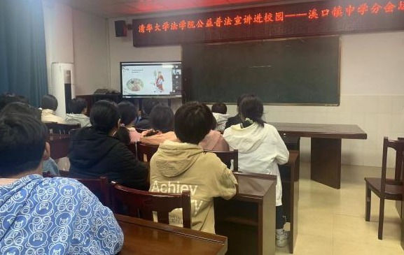 清华普法讲师黄诗涵在溪口镇中学宣讲