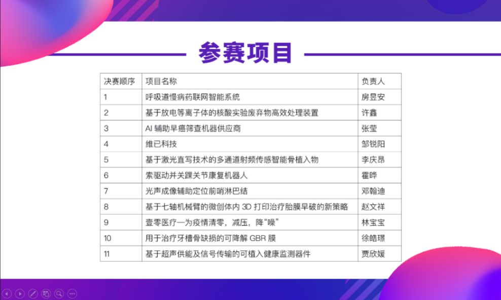 本次大赛是清华大学举办的首个医工交叉领域科技竞赛,旨在锻炼学生综合设计能力与团队协作能力,培养工匠精神,激发学生对科创活动和医工交叉领域的参与热情,为国家医疗健康领域培养未来人才。大赛吸引了来自清华大学、北京大学、北京航空航天大学、北京工业大学等国内多所高校共计97名选手报名参赛。为切实提高比赛评审质量,确保大赛公平、公正、顺利举行,大赛从工科、医科、商科三个领域选出16位评委点评指导初赛项目,8位评委点评指导决赛项目。从10月20日大赛报名开始,比赛共历时两个月。