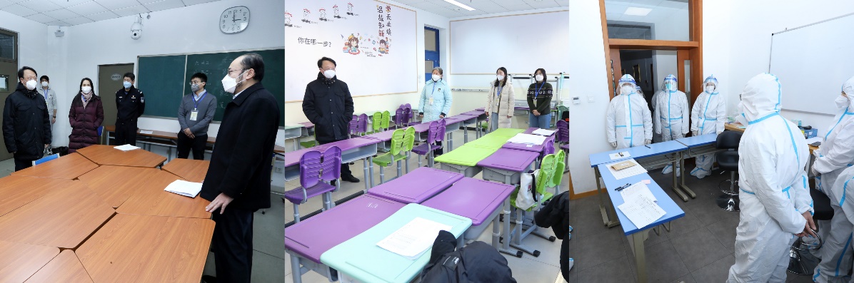 为切实保障各类考生和考试工作人员身体健康和生命安全,学校为特殊考生设置了专用考场。在四教和五教,王希勤详细询问了专用考场的安全管理、考生健康状态、服务保障、教室消杀等情况。