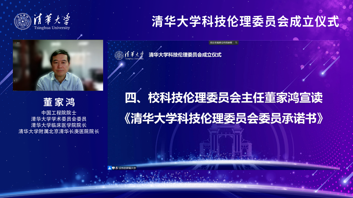 董家鸿宣读《清华大学科技伦理委员会委员承诺书》