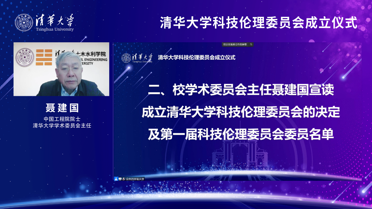 聂建国宣读成立清华大学科技伦理委员会的决定及第一届科技伦理委员会委员名单