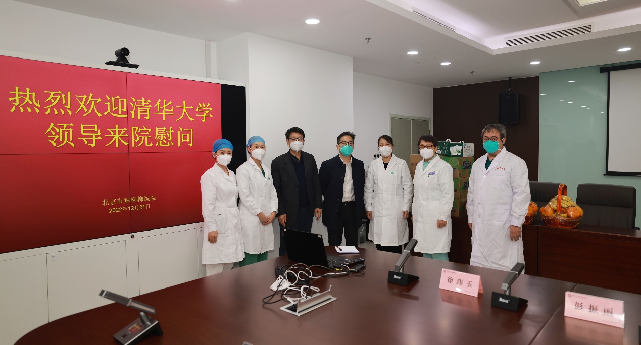 12月28日下午,王宏伟一行到清华大学玉泉医院走访并慰问医务人员。玉泉医院党委书记赵雨东等陪同走访。