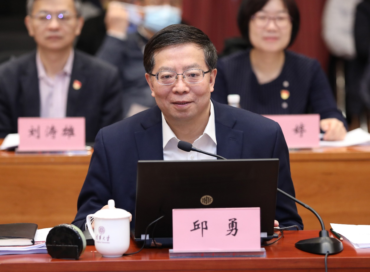 邱勇重点汇报学校五个方面的工作:一是加强党对学校的全面领导。学校始终以钉钉子精神加强党的政治建设,始终牢记习近平总书记对清华大学的殷殷嘱托,坚持和完善党委领导下的校长负责制,坚持党管改革发展,强化学校党委把方向、管大局、作决策、抓班子、带队伍、保落实的职责。二是锻造高素质的领导班子和干部队伍。加强校领导班子建设,凝聚共识、形成合力。加强对干部的关心、教育、培养,激励干部担当作为。开展并完善分层分类干部教育培训,根据校管干部、年轻干部、院系和机关中层骨干、党支部书记的岗位特点和要求,有针对性地开展履行职责必备知识和素养培训。三是夯实基层党组织建设。学校实施“强基、先锋、领航、领雁、智慧、保障”六项工程,有效推动基层党组织全面进步。创建青年教师骨干领航工作站,加强对优秀人才的政治引领和政治吸纳。四是推动思想政治教育创新发展。成立习近平新时代中国特色社会主义思想研究院,成立高校思想政治工作创新发展中心。坚持和发展“双肩挑”政治辅导员制度,强化实践育人,深入推进全员全过程全方位育人。把握重大活动契机,深入开展学生思想政治教育,推进思政课改革创新,发挥博士生讲师团引领示范作用。五是一刻不停推进全面从严治党。坚持严是唯一的标准,坚持唯有风清气正,才有欣欣向荣。建立内部巡视制度,实现对二级单位党组织和党政职能部门的巡视全覆盖。深化学校纪检监察体制改革,为学校事业高质量发展提供坚强保障。